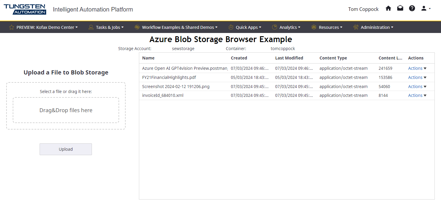 Azure Blob Storage Connector for TotalAgility & RPA Overview