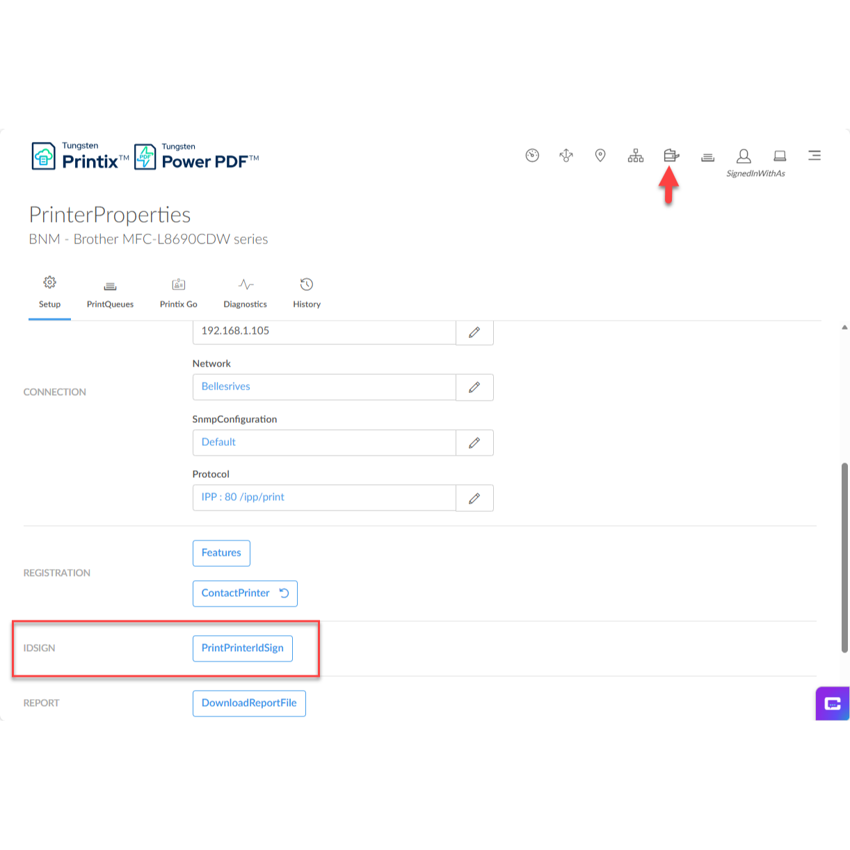 - Access the Console: Open the Printix administration console to manage the printer settings.