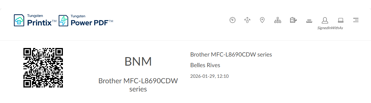 - Unique QR Code Identification: Each printer is assigned a unique identifier displayed as a QR code on a physical label.