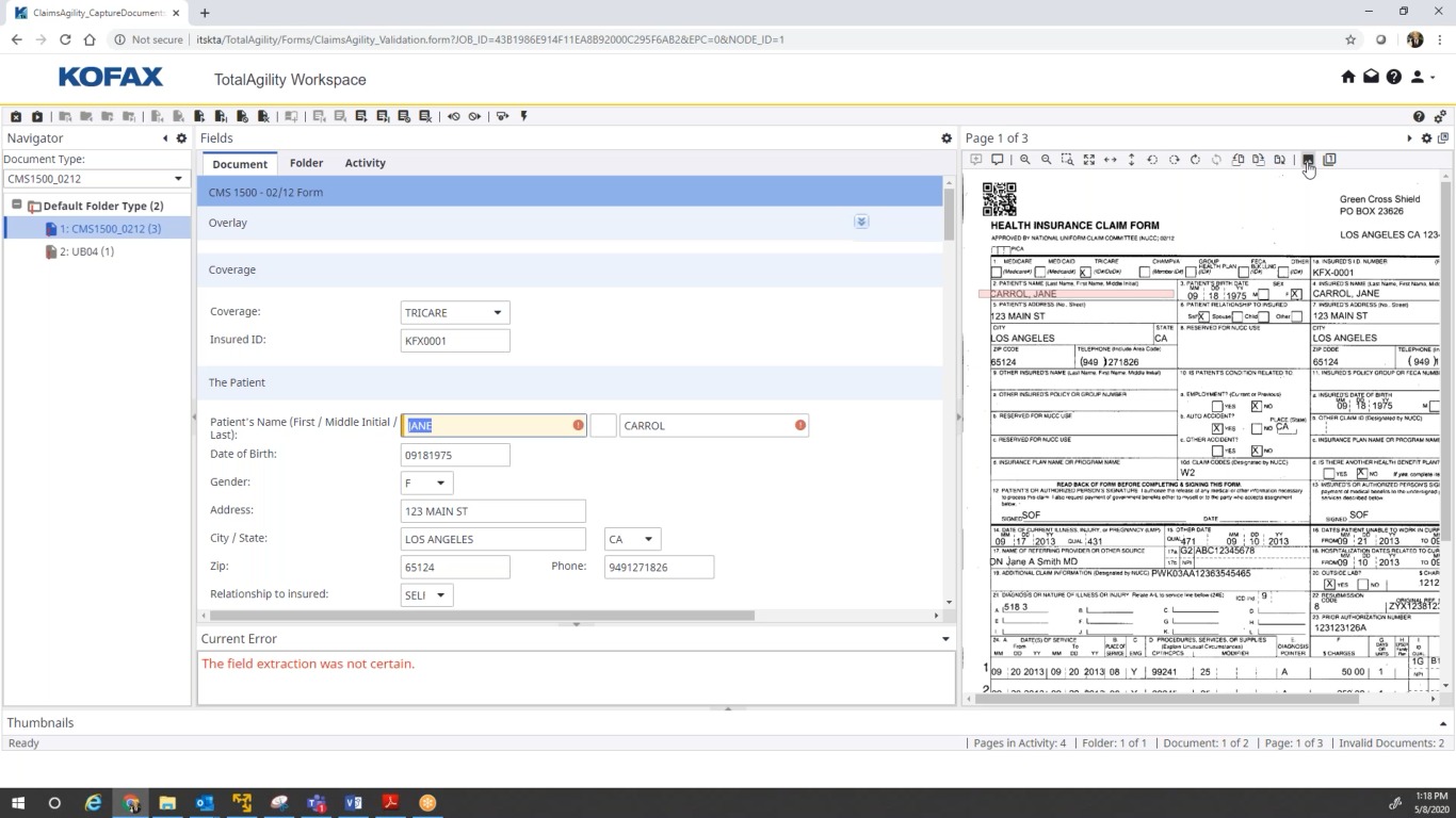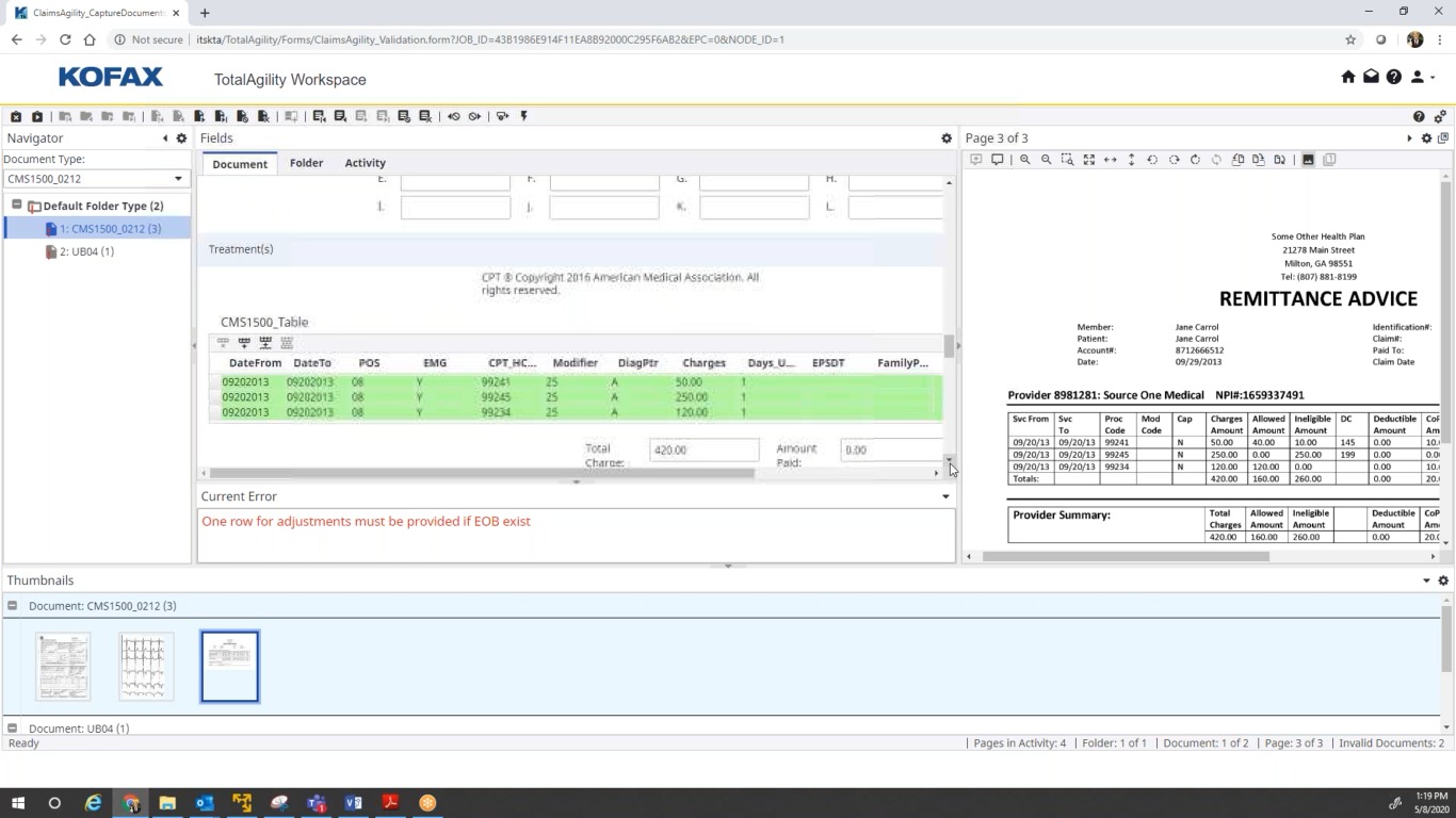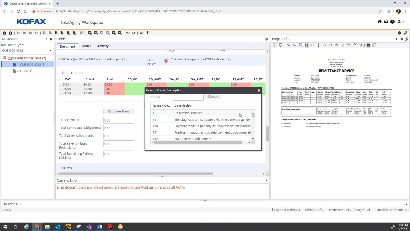 - A validation operator UI to review, correct and disposition claims, and to capture EOBs/Remittance Advice