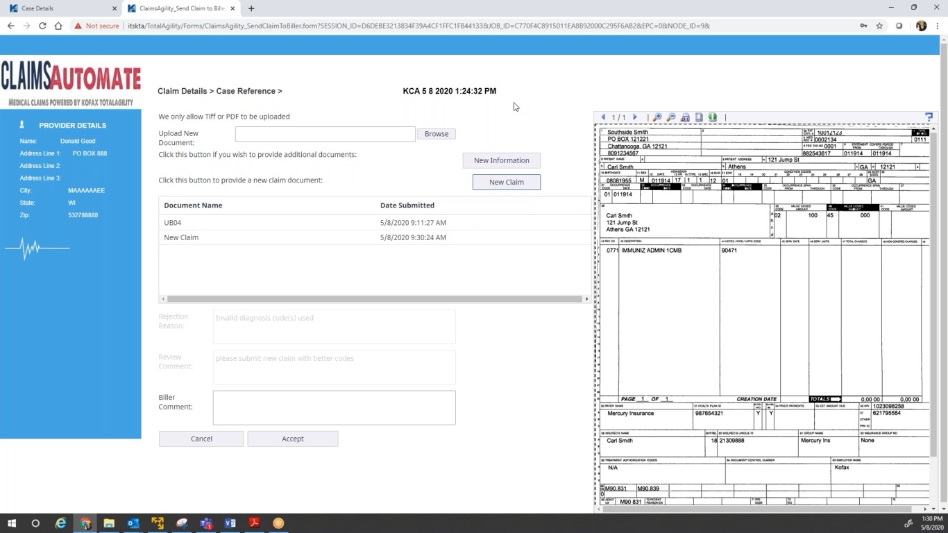 - An examiner user interface to review and manage rejections and communicate with providers to resolve problematic claims through a 24x7 web portal