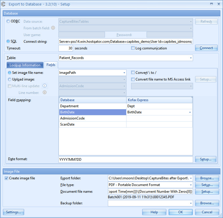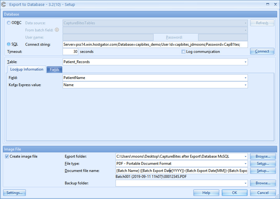Manage your scanned documents and data in a database connected through ODBC or SQL.