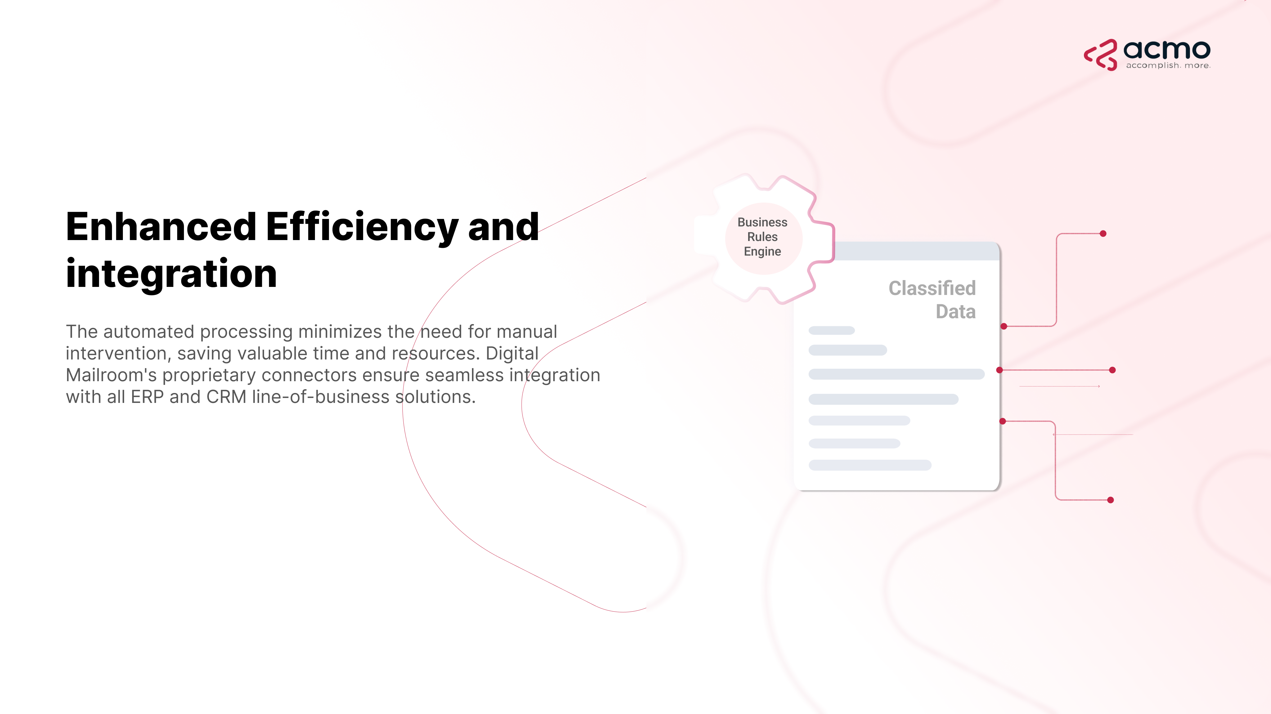 Seamless Integration: The Digital Mailroom's proprietary connectors ensure seamless integration with all ERP and CRM line-of-business solutions. This compatibility ensures that your existing systems can work harmoniously with the platform, maximising its benefits without disruption.
