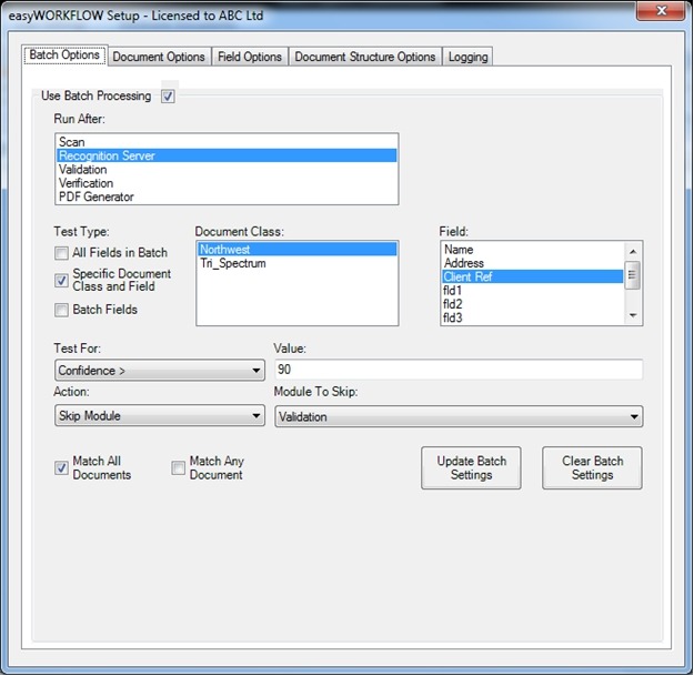 easyWORKFLOW allows you to choose from a number of flexible, customisable Batch, Document and Field levels 'scripts'. These will then be run against batches in your Capture system.