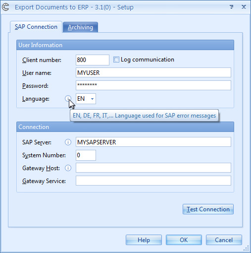 ERP Document Export Connector to SAP
