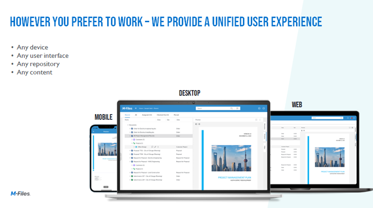 M-Files is an innovative metadata-driven document management platform that gives businesses a leading edge by automating their processes, enforcing information control, and enabling superior customer experiences.