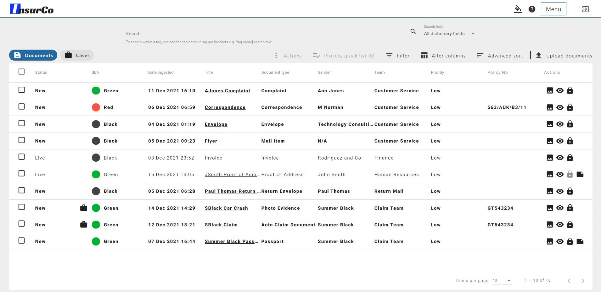 Gather, store and process documents in digital case folders, to facilitate better decisions in insurance claims processing, underwriting, onboarding and other document intensive processes.