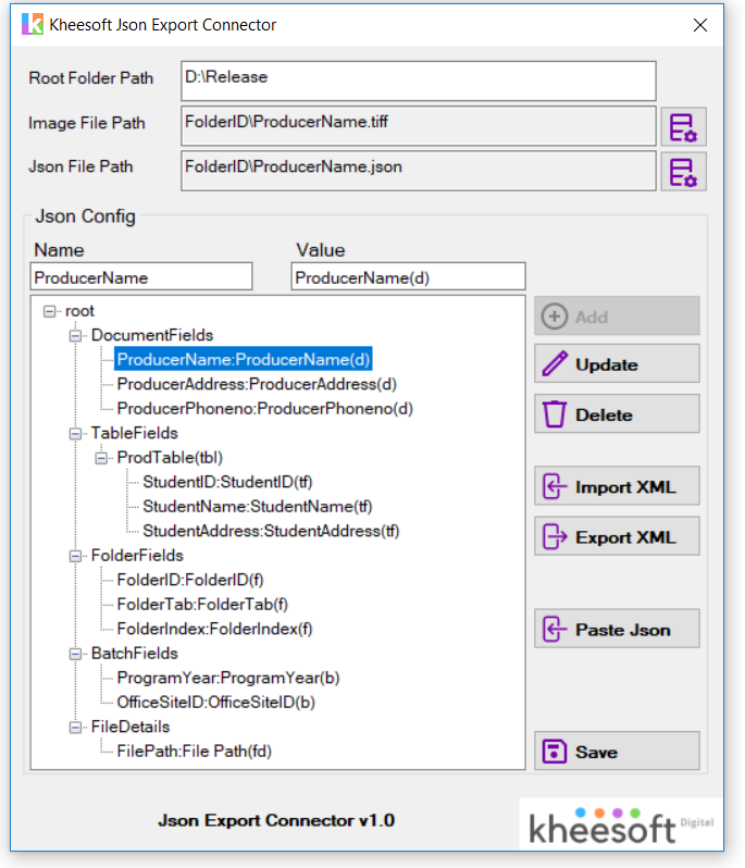 JSON Export Connector for TotalAgility helps to export the document metadata into JSON format. Also, it exports the images in the desired formats like pdf, tiff and so on. This is highly configurable, and any JSON formats can be configured.