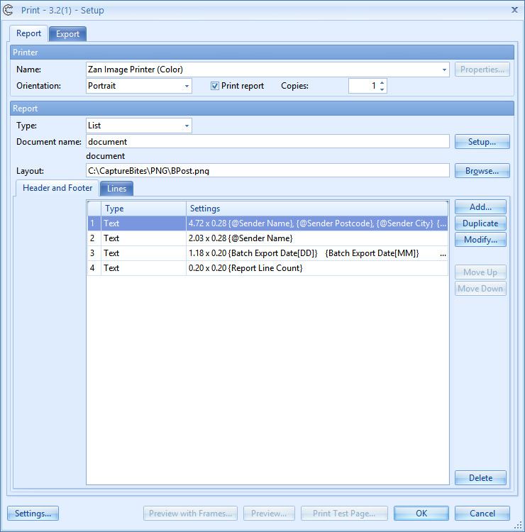 - List Report: Generates a multi-line report listing metadata of a complete batch of documents