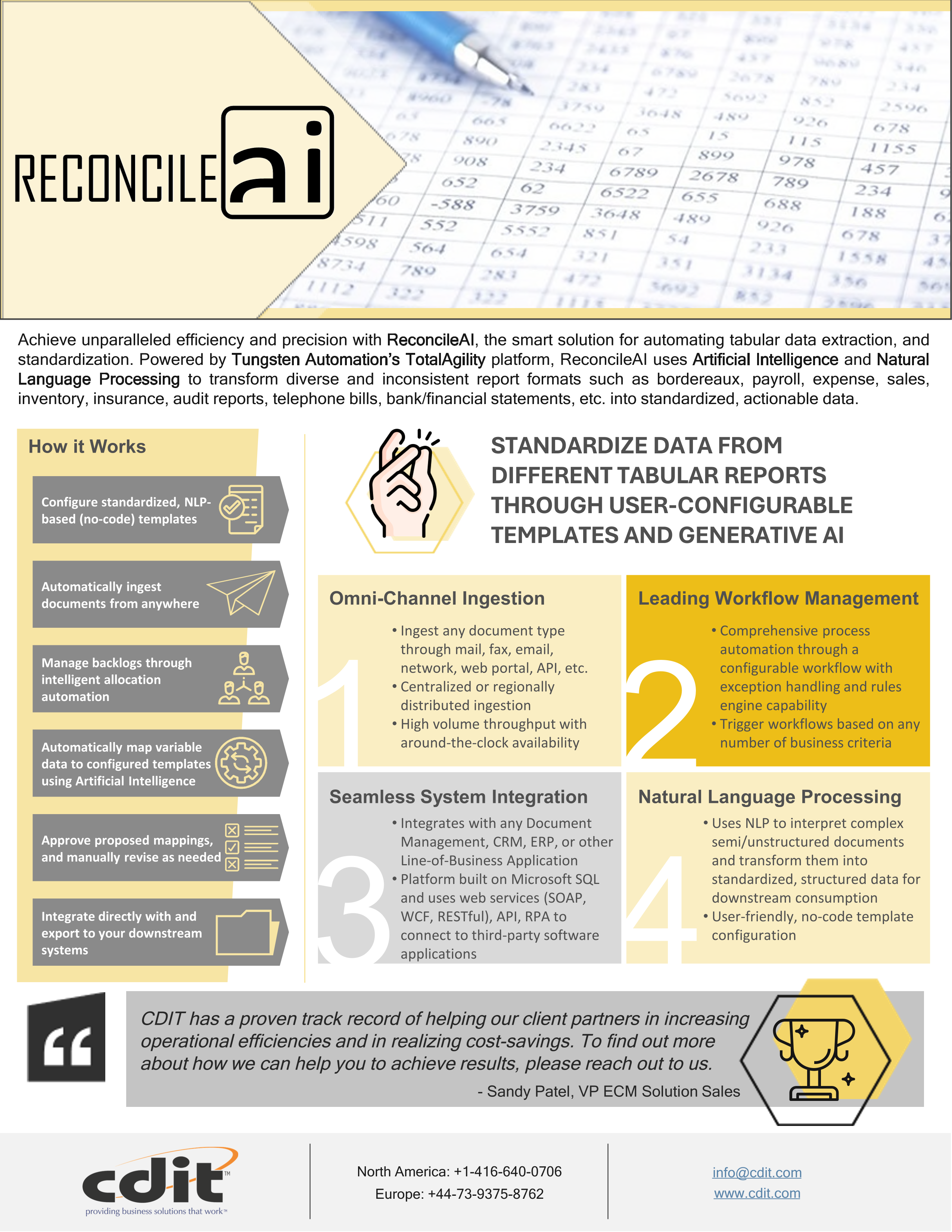 • Uses NLP to interpret complex semi/unstructured documents and transform them into standardized, structured data for downstream consumption