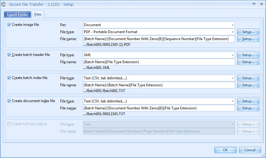 - The PDF setup allows to pre-define PDF reader settings and define PDF open and permissions passwords