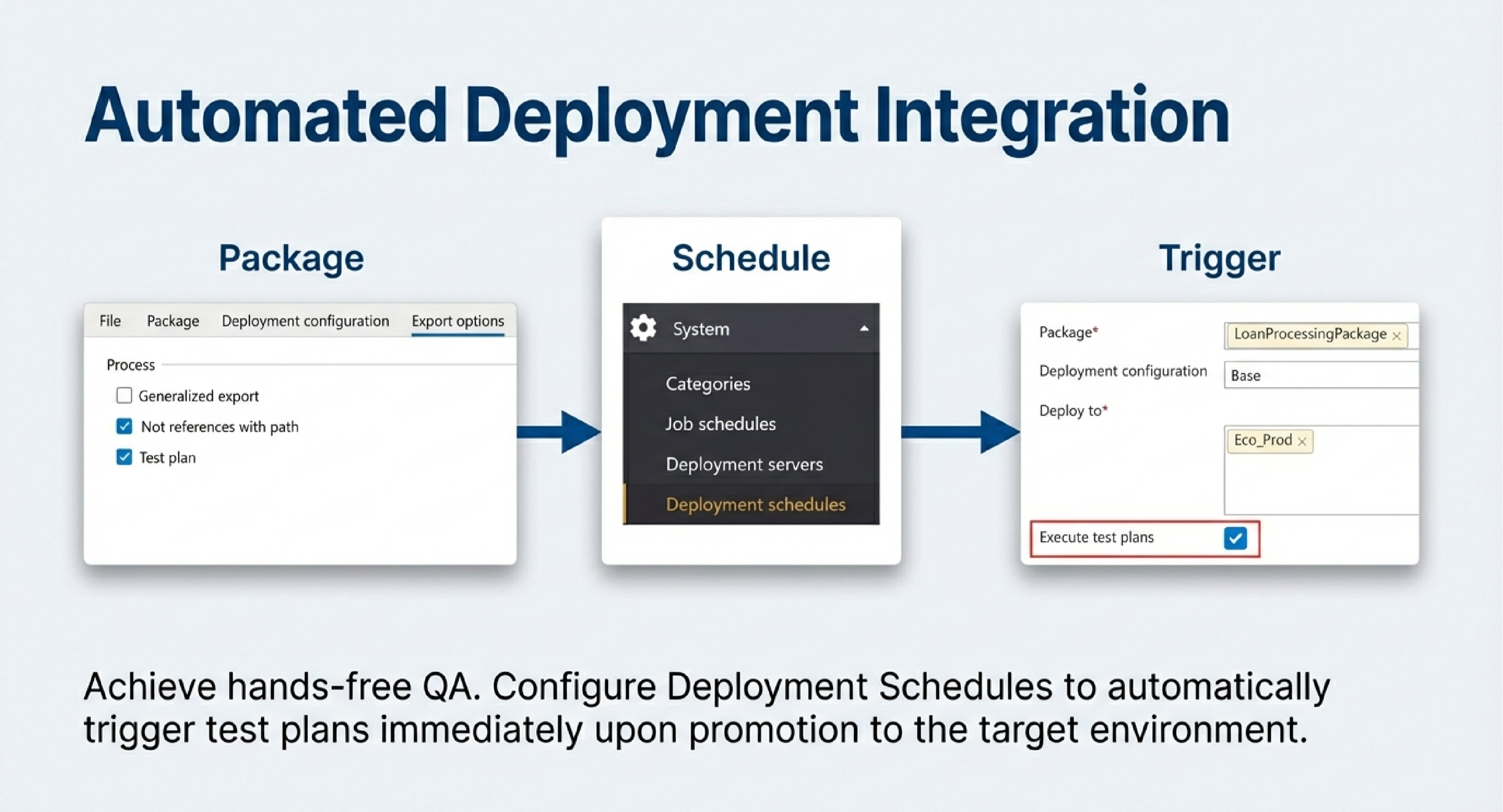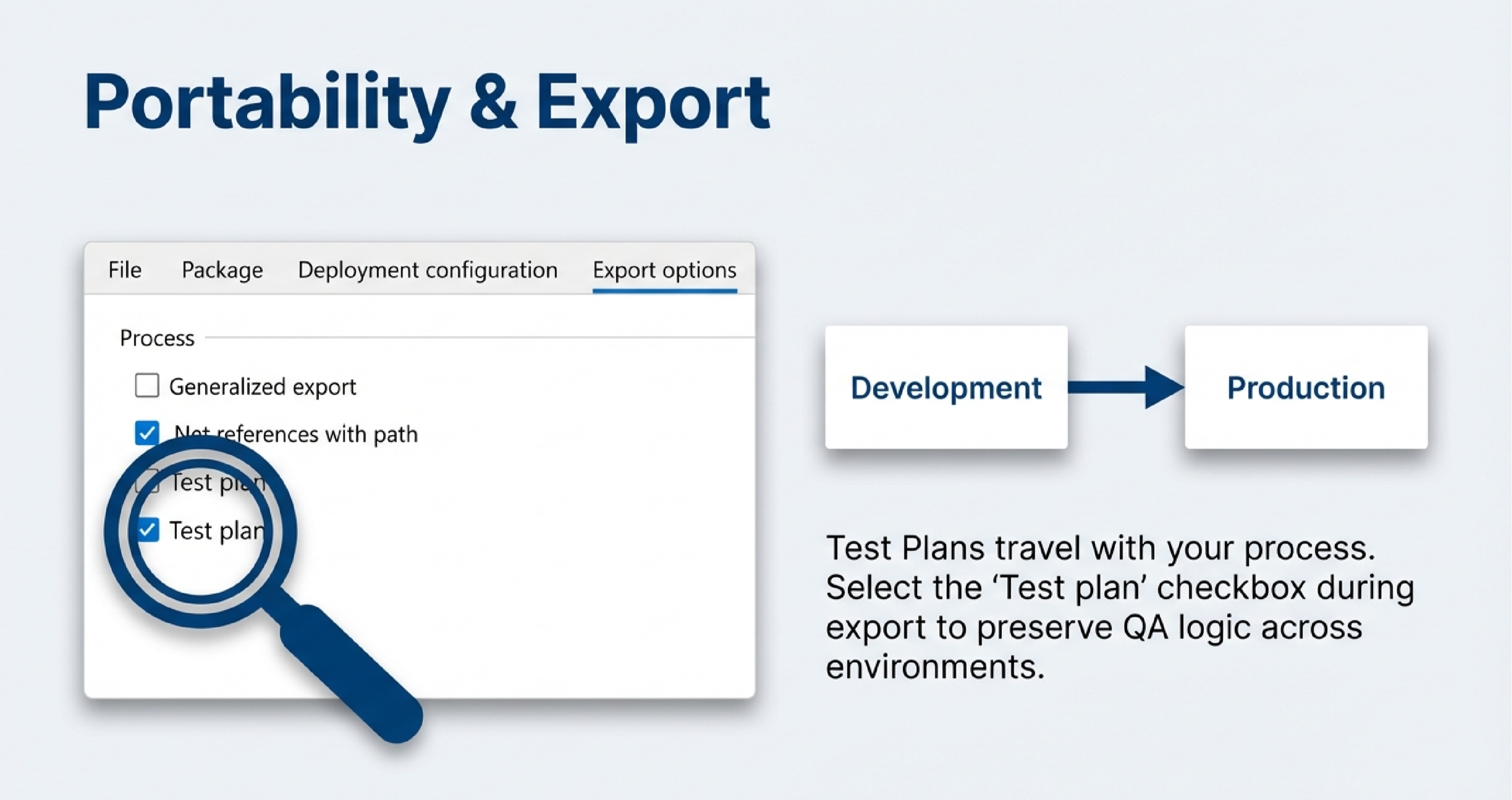 Instructions for exporting test plans and automating execution during deployment.
