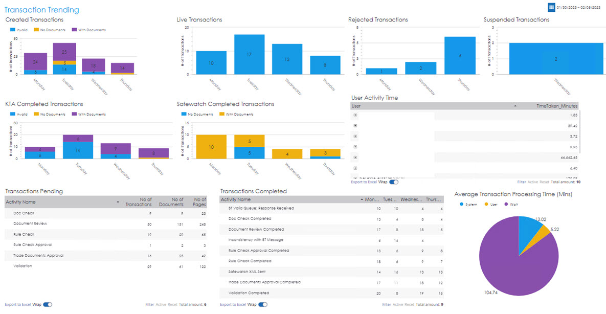 - Extensive reports provide full visibility into transactions processing times and activities